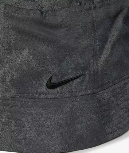 Este sombrero de pescador gris es un accesorio informal, versátil y funcional de Nike confeccionado con un tejido ligeramente elástico, un estampado tie-dye tonal y un ala de 360 grados con costuras de refuerzo.